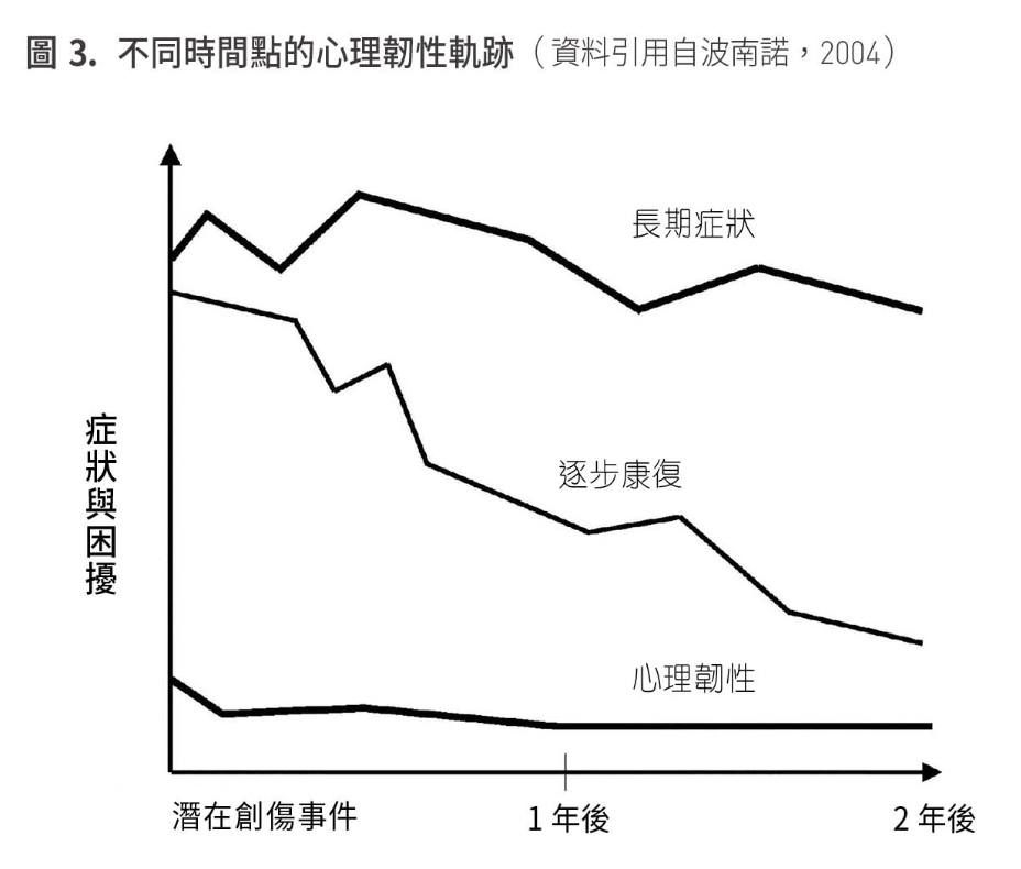 說真的,很難判斷,連有經驗的醫師,也很難從他們的描述去正確判斷。所以接下來,作者會開始陳述心理韌性軌跡的運作,來讓讀者們知道,什麼是關鍵。